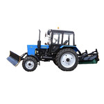 Коммунальная машина на базе трактора МТЗ 82 (Беларусь 82.1) с ковшом и щеткой предназначена для очистки проезжей части улиц, площадей, дорог и тротуаров с твердым покрытием от снега и мусора, а также погрузочно-разгрузочными работами.